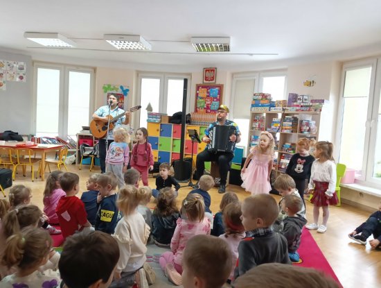 W naszym przedszkolu raz w miesiacu gościmy muzyków z "Filharmonii na kółkach". Audycja muzyczna dostarcza nam dużo wiedzy, rozrywki i nas bardzo umuzykalnia.