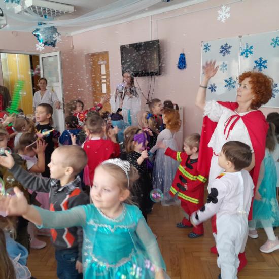 Tak też było u nas, ponieważ w naszym przedszkolu odbył się własnie bal karnawałowy! Tego dnia już od rana w przedszkolu pojawiały się kolorowe postacie. Dzieci przebrane były za bohaterów znanych bajek. W tym dniu było wiele zabaw, gier i tanców.Bal umożliwił dzieciom i wychowawcom spędzenie czasu w miłej atmosferze. Wspólna zabawa przyniosła wiele radości naszym wychowankom.