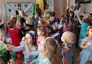 Tak też było u nas, ponieważ w naszym przedszkolu odbył się własnie bal karnawałowy! Tego dnia już od rana w przedszkolu pojawiały się kolorowe postacie. Dzieci przebrane były za bohaterów znanych bajek. W tym dniu było wiele zabaw, gier i tanców.Bal umożliwił dzieciom i wychowawcom spędzenie czasu w miłej atmosferze. Wspólna zabawa przyniosła wiele radości naszym wychowankom.