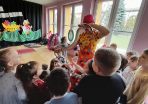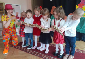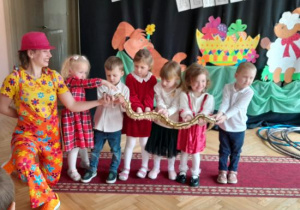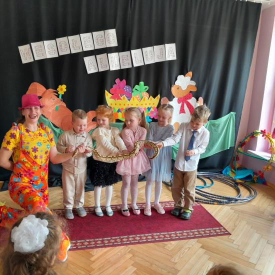 Przedszkolaki z zapartym tchem oglądały niesamowite sztuczki cyrkowe i magiczne, podziwiały popisy wesołego pieska, a największe emocje wzbudziło spotkanie z żywym wężem – odważni mogli go dotknąć, a nawet wziąć na ręce!To było pełne emocji i dobrej zabawy widowisko, które na długo pozostanie w pamięci dzieci. Dziękujemy za wspaniały występ!