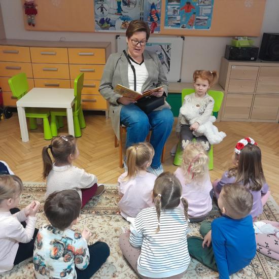 Czytanie na przedszkolnym dywanie to działanie realizowane w ramach projektu Mali czytelnicy oraz Mały Miś w świecie wielkiej literautury. Odbywa się ono cyklicznie co tydzień. Zaproszeni są do niego Rodzice, Dziadkowie,Dziadkowie a nawer starsze rodzeństwo , czytają dzieciom książeczkę z domowego księgozbioru.