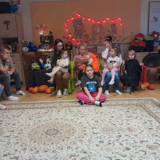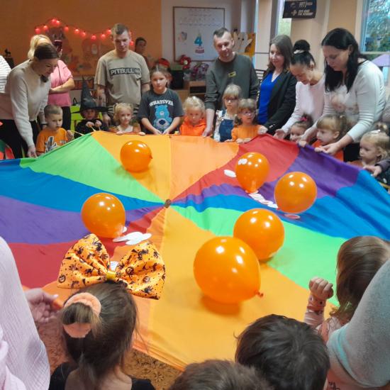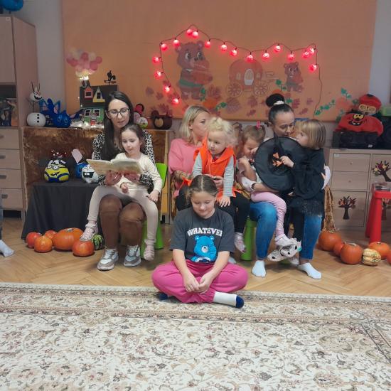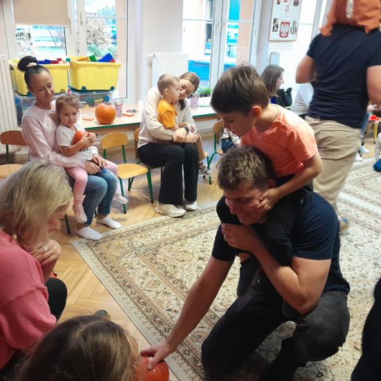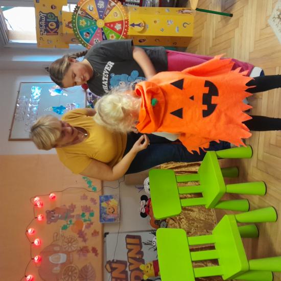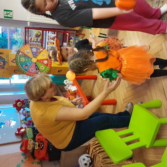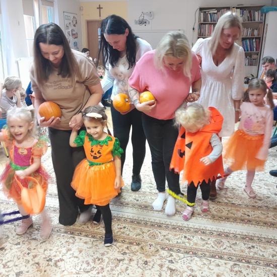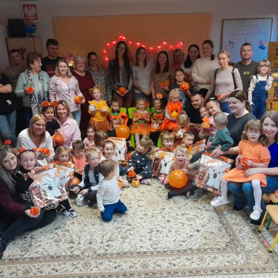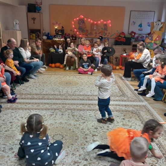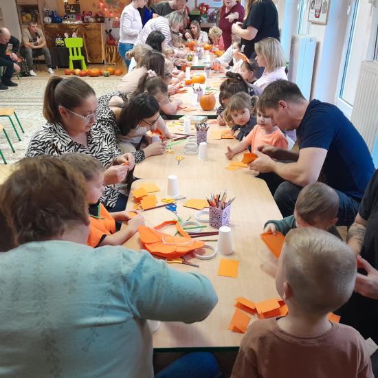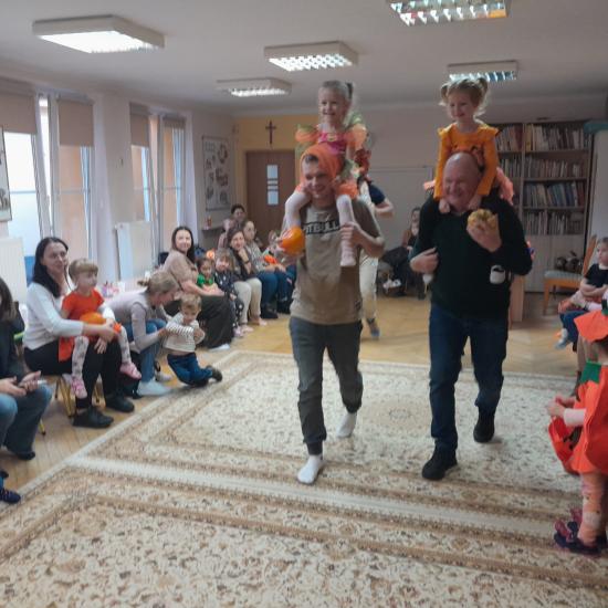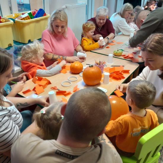 Z okazji Dnia Dyni odbyły się warsztaty z Rodzicami. Spotkanie rozpoczęło się głośnym czytaniem przez Rodziców książki „ Franklin i duża dynia”. Potem był czas na wspólne rodzinne zabawy z użyciem dyni. W dalszej części spotkania było wspólne tworzenie papierowych dyni. Na zakończenie odbyło się losowanie upominków za udział w Rodzinnym Challenge, których fundatorami byli rodzice Jasia. Piękne dyniowe bajkowe postaci można było oglądać na zorganizowanej wystawce.