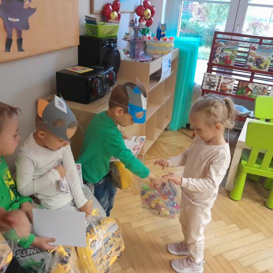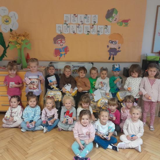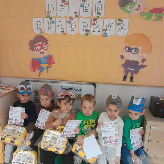 Dzień Chłopaka to ważne święto. W naszym przedszkolu przebiegał pod hasłem „ Mali Superbohaterzy. Dziewczynki uczciły je wspólnymi zabawami tanecznymi, śpiewaniem piosenek i składaniem życzeń. Chłopcy musieli wykazać się swoimi umiejętnościami , by otrzymać tytuł Superbohatera. Na zakończenie zabawy dziewczynki złożyły chłopcom życzenia i wręczyły upominki, ufundowane przez rodziców.