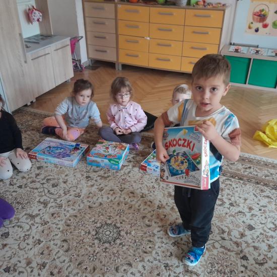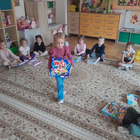 Dzień gier planszowych to coroczne święto miłośników tych gier obchodzone 10 października. Gry planszowe są sposobem na wspólne spędzanie czasu i wspólny relaks. Są rozrywką rozwijającą wiedzę i wyobraźnię. Angażują kluczowe dla myślenia obszary, takie jak pamięć, planowanie, dedukcję czy liczenie. W zależności od swego rodzaju rozwijają, uczą i bawią. Są przeznaczone dla dzieci w rożnym wieku i dorosłych. Wdrażają do współzawodnictwa, przestrzegania reguł a także wyrabiają umiejętność ponoszenia porażki. W tym dniu nasze przedszkolaki miały możliwość prezentacji swoich planszówek oraz wspólnych zabaw z ich wykorzystaniem.