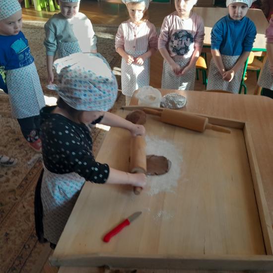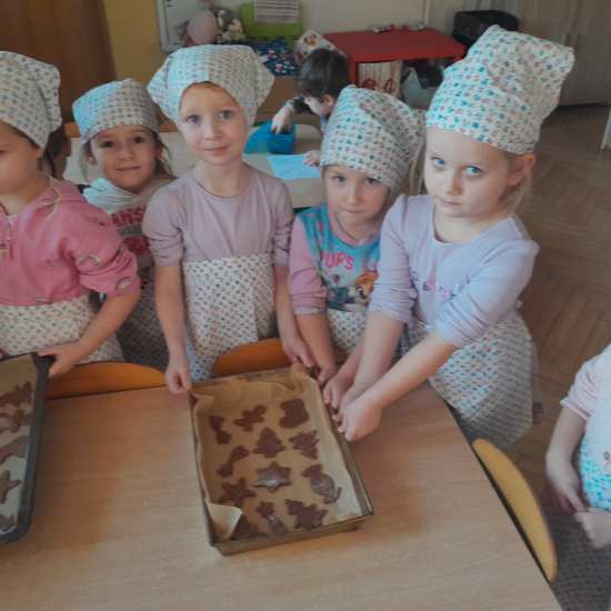 Dzieci uwielbiają zajęcia kulinarne. Dlatego przed świętami Bożego Narodzenia postanowiliśmy upiec pierniczki. Dzieci nie tylko poznały przepis ale również mogły samodzielnie zagniatać ciasto, wałkować i wykrawać przy pomocy foremek. Zapach piernikowego ciasta przybliżał atmosferę świąt.