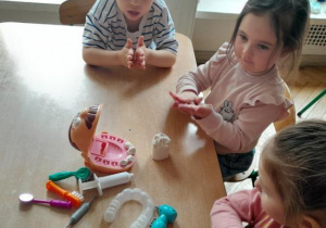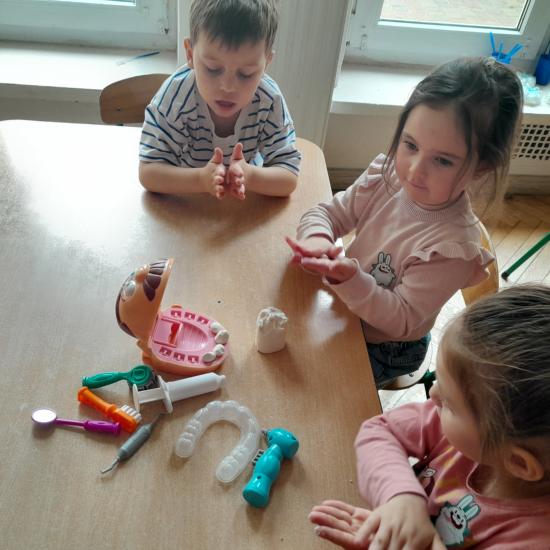 W ramach realizacji projektu Czyściochowa Akademia świętowaliśmy Światowy Dzień Zdrowia Jamy Ustnej. Celem podjętych działań i zabawa było kształtowanie aktywnych postaw i nawyków dzieci wobec zdrowia jamy ustnej. Była pogadanka, zabawa przy piosence"O każdy ząbek dbam", zabawa dydaktyczna "Co jest zdrowe dla naszych zebów", klasyfikacja żywności, eksperyment z jajkiem, zagadki słowne i dotykowe, nauka używania nici dentystycznych, szykowanie na talerzykach zdrowego śniadania dla Królika Higienka. Był również eksperyment z jajkiem ukazującym dzieciom jak kwasy niszczą wapń. Na zakończenie dzieci otrzymały szczoteczki i pasty do zębów ufundowane przez Firm Jordan oraz kalendarz szczotkowania i kolorowanki. Mamy nadzieję , że spotkanie wpłynie na kształtowanie postawy dzieci wobec własnego zdrowia i nawyków higienicznych a także przełamie lęk przed wizytą w gabinecie.
