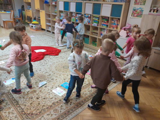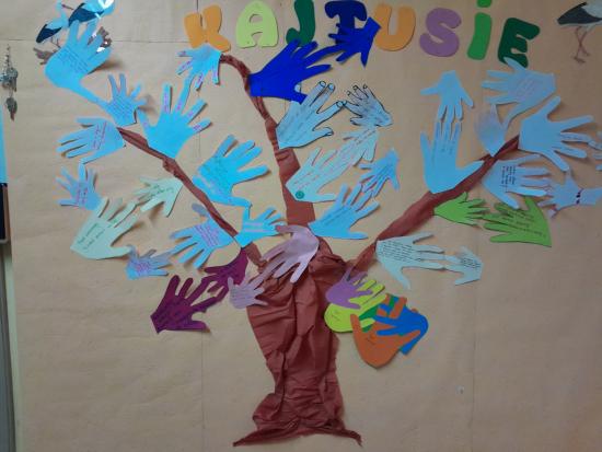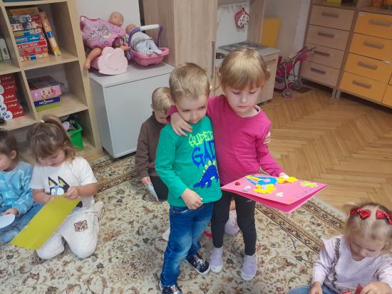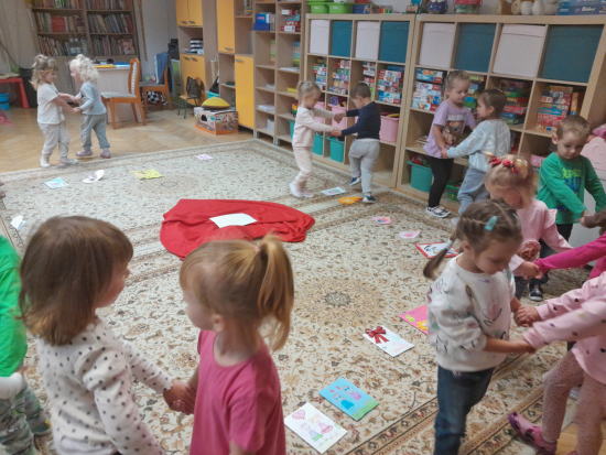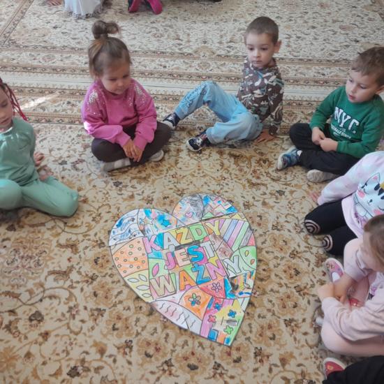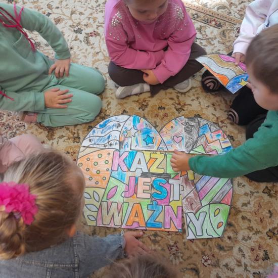 W dniach 29 września - 3 października 2025 roku nasza grupa włączyła się w ogólnopolską akcję pod hasłem Tydzień o budowaniu relacji ,której organizatorem było Ministerstwo Edukacji Narodowej. Inicjatywa skierowana była do dzieci, rodziców i nauczycieli. Akcja miała na celu budowanie bezpiecznej i przyjaznej atmosfery w przedszkolu, rozwijanie umiejętności rozwiązywania konfliktów bez użycia przemocy, kształtowanie postawy szacunku, empatii i odpowiedzialności wobec innych. W naszej grupie w Tygodniu o Budowaniu Relacji odbyło się wiele zajęć i zabaw. Wspólnie zastanawiałyśmy się nad tym, co pomaga w byciu dobrym kolegą czy koleżanką. Rozmawiałyśmy o emocjach, przyjaźni i współpracy. Mówiłyśmy też o tym, jakie słowa sprawiają innym przykrość, a jakie budują relacje. To ważna lekcja, do której będziemy wracać, bo wrażliwość na krzywdę swoją i innych jest ważną kompetencją emocjonalną, którą chcemy rozwijać w naszych dzieciach. Do współpracy włączyli się również rodzice, którzy uczestniczyli w Rodzinnym Challenge „ Drzewo życzliwych raczek”, wykonując wraz z dziećmi odbicia swojej i dziecka dłoni i wpisując w nie mądre myśli o życzliwości. Rodzice pomogli również dzieciom wykonać laurki dla przyjaciela. A na zakończenie Tygodnia o Budowaniu Relacji włączyli się w zabawę , która potrwa do końca roku szkolnego pod hasłem „ Kufereczek pełen bajeczek”.