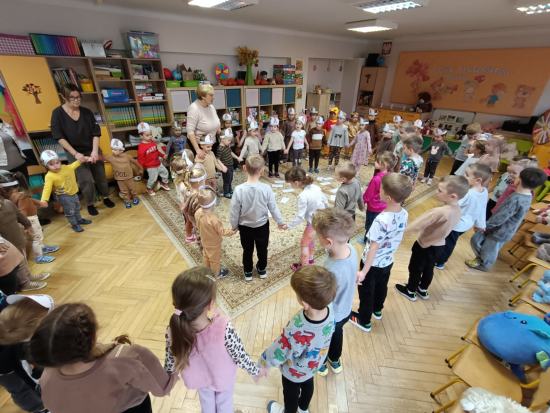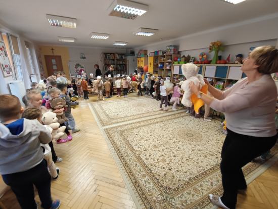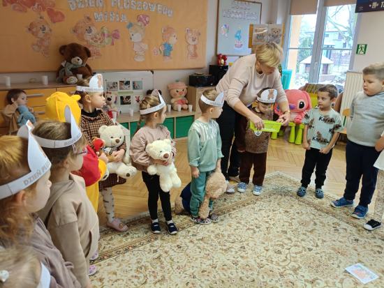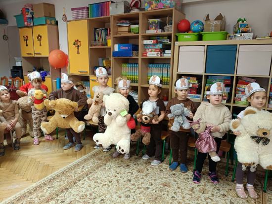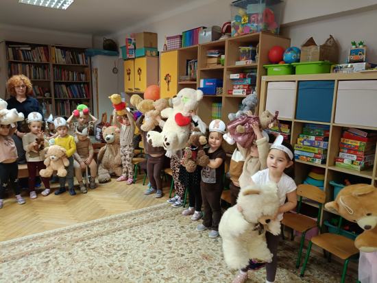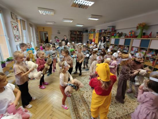 26 listopada dzieci z naszego przedszkola urodziny pluszowego misia. Każde dziecko w tym dniu przyniosło swojego misia – pluszaka. Na początku dzieci zaprezentowały swoje misie ukochane. Pluszowy miś to najlepszy przyjaciel każdego dziecka, ukochana maskotka na dobre i złe chwile. Można go przytulić, a nawet powiedzieć mu o czymś bardzo ważnym. Można było zobaczyć misie małe, średnie, duże, brązowe, różowe, białe itd. Wszystkie były śliczne i wyjątkowe. W tym wesołym dniu przedszkolaki czekało wiele atrakcji. Zostały zaproszone do wspólnej zabawy ze swoimi misiami: było wiele zabaw ruchowych, misiowej gimnastyki i tańców ze swoimi misiami a także konkursy i zadania do wykonania o tematyce misiowej. Ten wyjątkowy dzień był pełen uśmiechu i świetnej zabawy. Dzieci były szczęśliwie, iż mogły spędzić tyle czasu ze swoimi pluszowymi ulubieńcami a także kolegami i koleżankami z całego przedszkola.