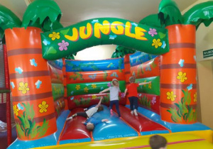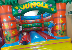 Wszystkie dzieci z wielką radością i entuzjazmem zjeżdżały na zjeżdżalni, wdrapywały się na konstrukcje, skakały na dmuchańcach, jeździły samochodami……… zabawy nie było końca.