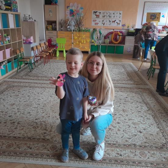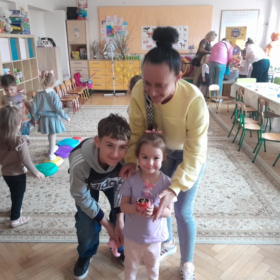 Przed zbliżającymi się Świętami Wielkanocnymi dzieci i rodzice uczestniczyli w rodzinnym challange na palmę wielkanocną. Palemki zostały wystawione na sprzedaż na kiermaszu wielkanocnym. Natomiast podczas wielkanocnych warsztatow był czas na rodzinne czytytanie książeczek o tematyce wielkanocnej, na wspólne zabawy z jajkiem w roli głównej oraz na wspólne tworzenie . Dzieci ozdabiały sylwety zajączków i skorupkowatych doniczek , w których później wspólnie z rodzicami zasiały owies lub rzeżuchę, by stały się one wielkanocną ozdobą w domu.