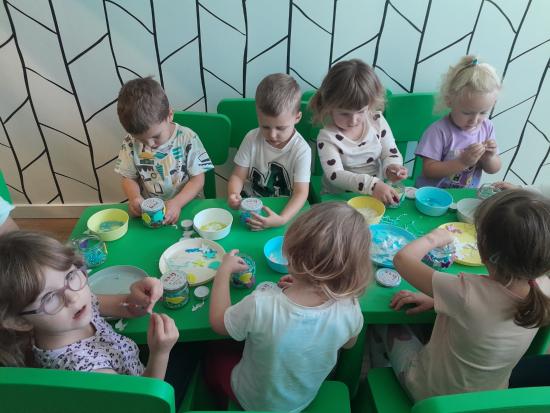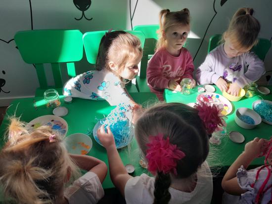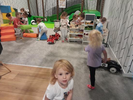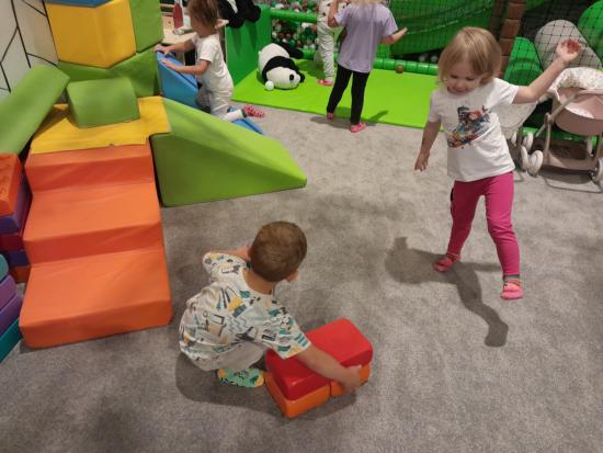 Wyjście do sali zabaw „ Mała Panda” byłą okazją do angażowania dzieci w aktywność fizyczną poprzez różnorodne zabawy ruchowe , które wspierają ich rozwój motoryczny oraz umiejętności społeczne. Uczestnictwo w takich zabawach rozwija współpracę i komunikację oraz buduje relacje z rówieśnikami.