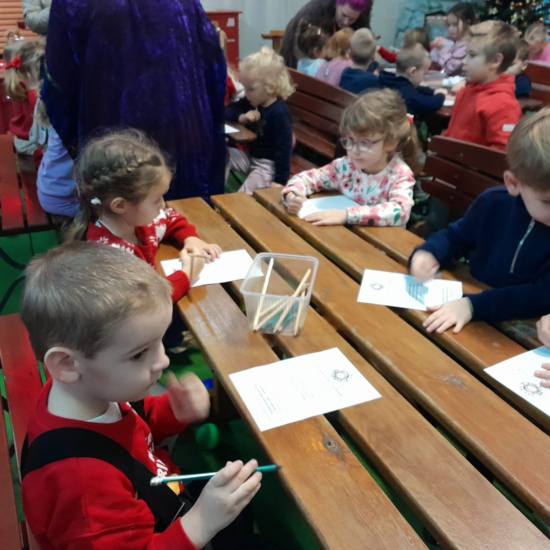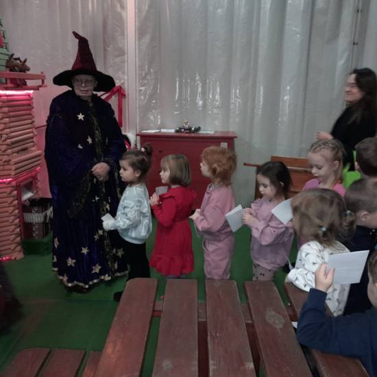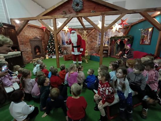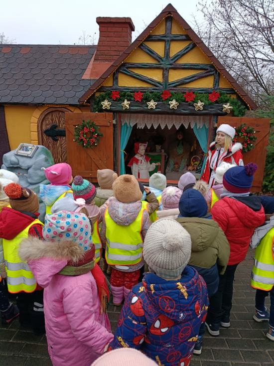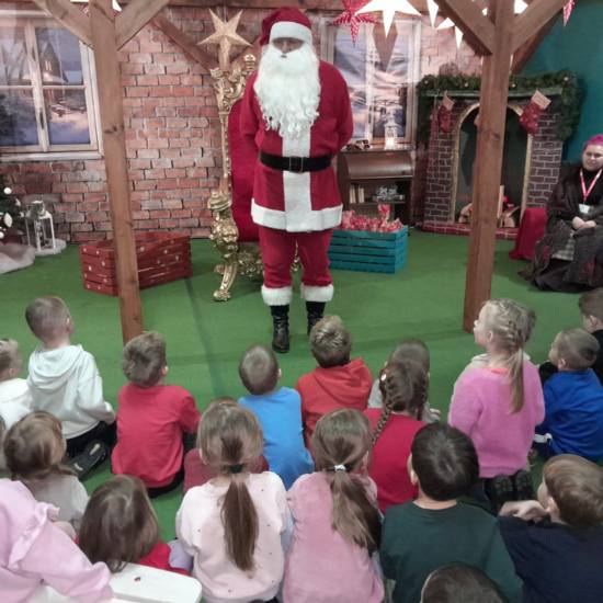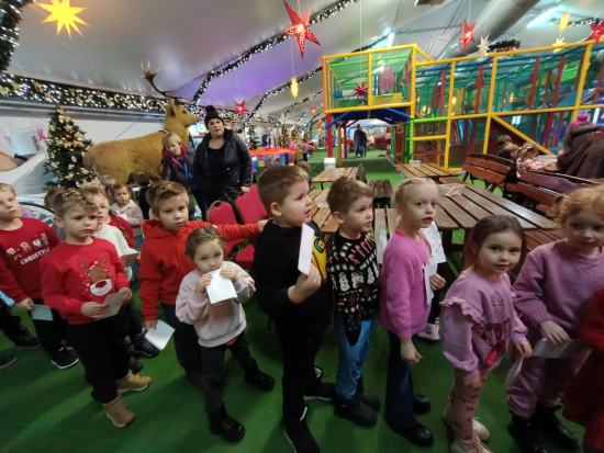 9 grudnia nasi podopieczni z grupy Kajtusie oraz grupy Słoneczka wspólnie pojechali odwiedzić samego Świętego Mikołaja, który ma swój dom w Kołacinku. Dzieci podczas wycieczki mogły zwiedzić bajkową krainę i przypomnieć sobie najpiękniejsze i najbardziej popularne dziecięce bajki. Dzieci wzięły również udział w warsztatach świątecznych, gdzie ich zadaniem było ozdobienie drewnianej bombki. Dzieci miały też okazję pobawić się na sali zabaw, napisać list do Mikołaja z prośbą o unieważnienie wszystkich złych uczynków :-) Po zniszczeniu ich w wielkim młynie, dzieci otrzymały specjalny dyplom. Dzieci mogły również obejrzeć dom Świętego Mikołaja, dom Dziadka Mroza, stajnie, w której znajdowało się zimowe miniaturowe miasteczko raz wiele innych. Największą atrakcją natomiast było spotkanie z samym Mikołajem. Dzieci śpiewały mu piosenki, mówiły wierszyki a na koniec Święty Mikołaj wręczał osobiście każdemu dziecku prezent. To była niezapomniana wycieczka!
