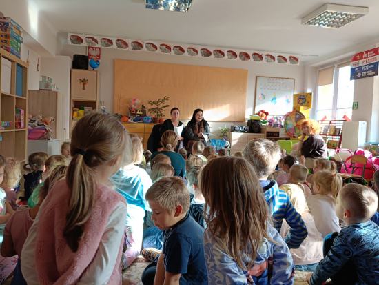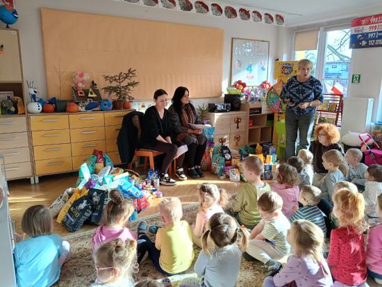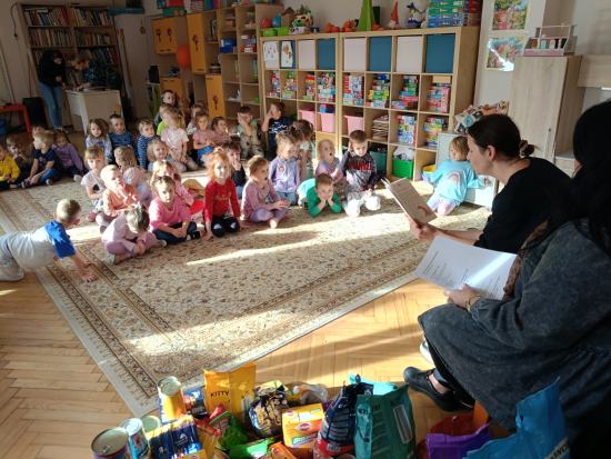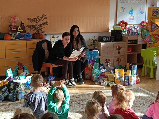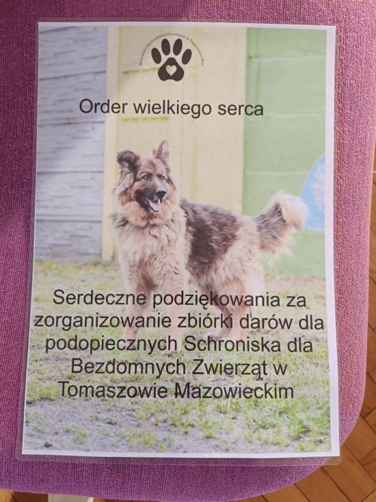 Pracownicy schroniska dla zwierząt w Tomaszowie Mazowieckim odwiedzili nasze przedszkole w ramach podsumowania akcji zbierania darów dla zwierząt, zamieszkujących schronisko. Pracownicy opowiedzieli naszym przedszkolakom o swojej pracy oraz o tym, jak pomagać bezdomnym zwierzętom. Opowiedzieli wiele ciekawostek o psach i kotach, którymi się opiekują. Przedszkolaki dowiedziały się, jak odpowiedzialnie traktować zwierzęta, dlaczego adopcja jest ważna oraz w jaki sposób można wspierać schronisko. Rodzicom i ich dzieciom udało się przekazać naprawdę pokaźną ilość darów dla zwierząt za co bardzo dziękujemy. Spotkanie wzbudziło w dzieciach dużo emocji i empatii, a wizyta stała się wartościową lekcją wrażliwości i troski o zwierzęta. Przedszkole otrzymało z rąk Pracowników schroniska Order Wielkiego Serca.